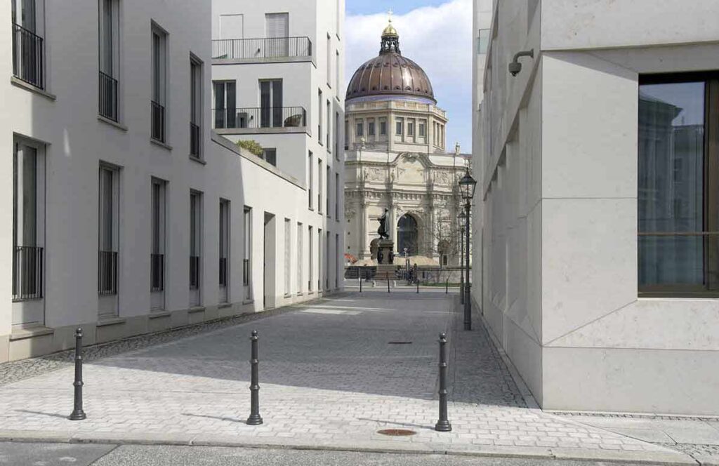 neue mitte, 2021 Numerous buildings have been erected in the city center of Berlin in recent years. The once destroyed, then divided and finally reunified city offered a real opportunity to meet the new and upcoming challenges of the 21st century with innovative and sustainable architecture. But only a few exceptions have taken up these new developments; in the majority, a conservative and uniform architecture style seems to have prevailed.
